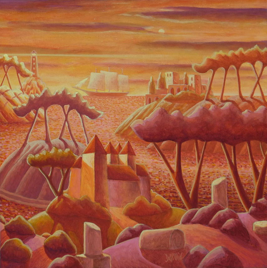 Paesaggi, Sogni, paesi incantati e molti personaggi sono i soggetti preferiti dell'artista.